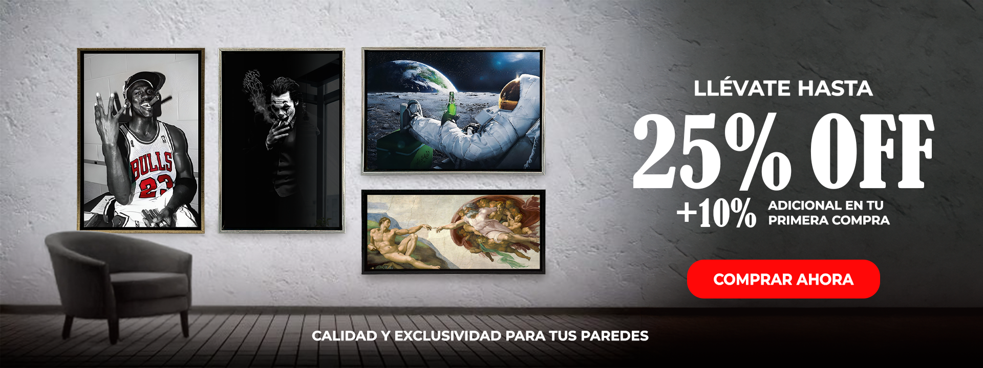 En Moust Art contamos con 3 colores de marcos para personalizar tu obra y hacerla única.